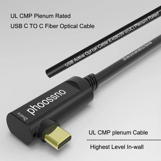 Mit UL CMP Plenum bewertetes USB C-zu-C-Glasfaserkabel 3.1 rechts, 90 °C