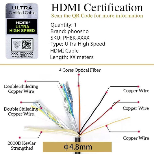 Gepanzertes 8K HDMI-zertifiziertes Glasfaserkabel 2.1